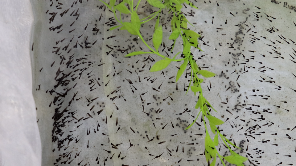 在湖南农业大学技术支持下,进行牛蛙种质的优化、改良,牛蛙蝌蚪苗的繁育,四脚苗种的培育等。基地现有孵化棚30个,种蛙养殖大棚3个,种蛙培育池30个,蝌蚪养殖池700个,稻蛙养殖实验池20亩。年产牛蛙蝌蚪苗5亿,牛蛙四脚苗50万斤。