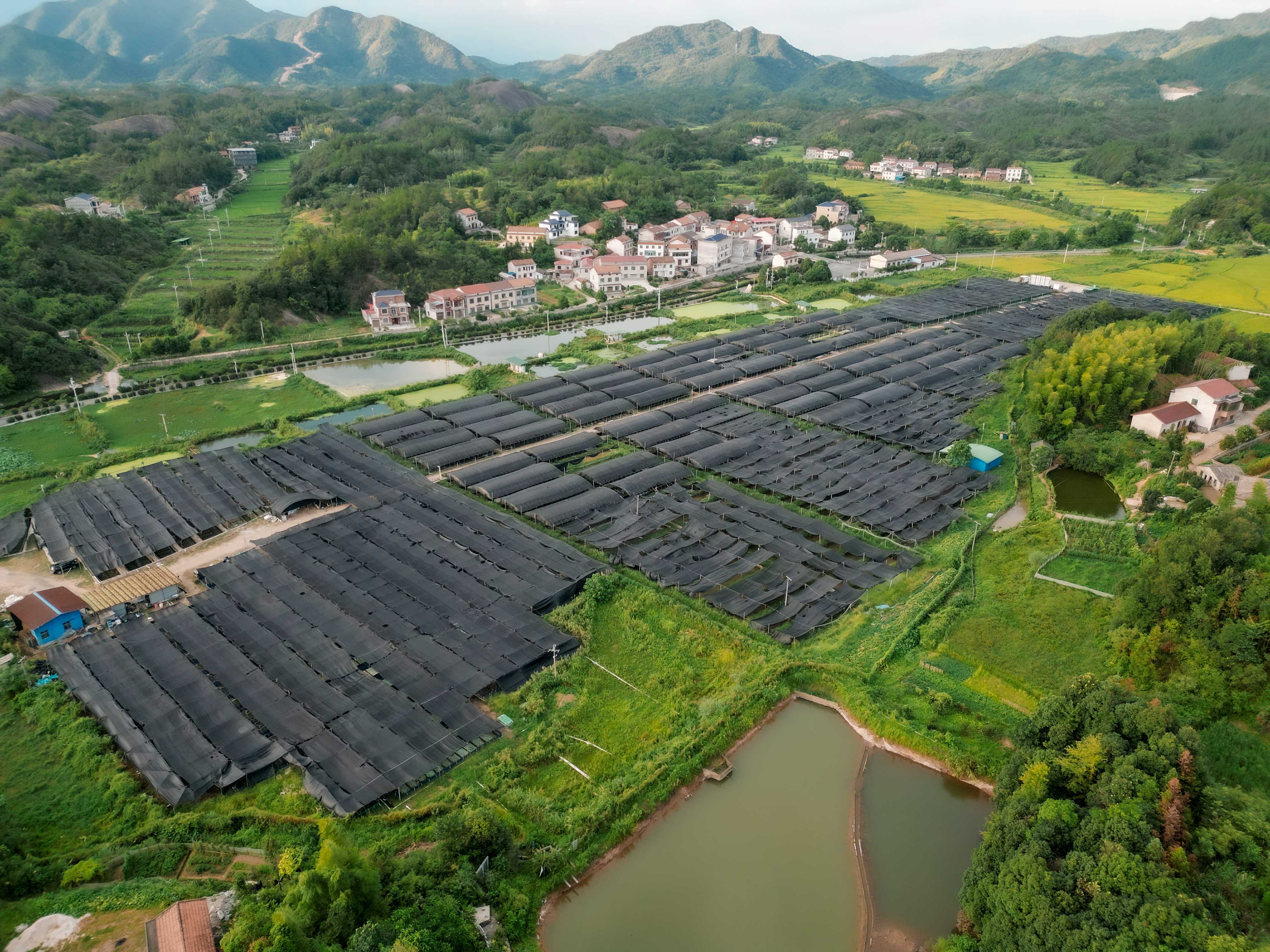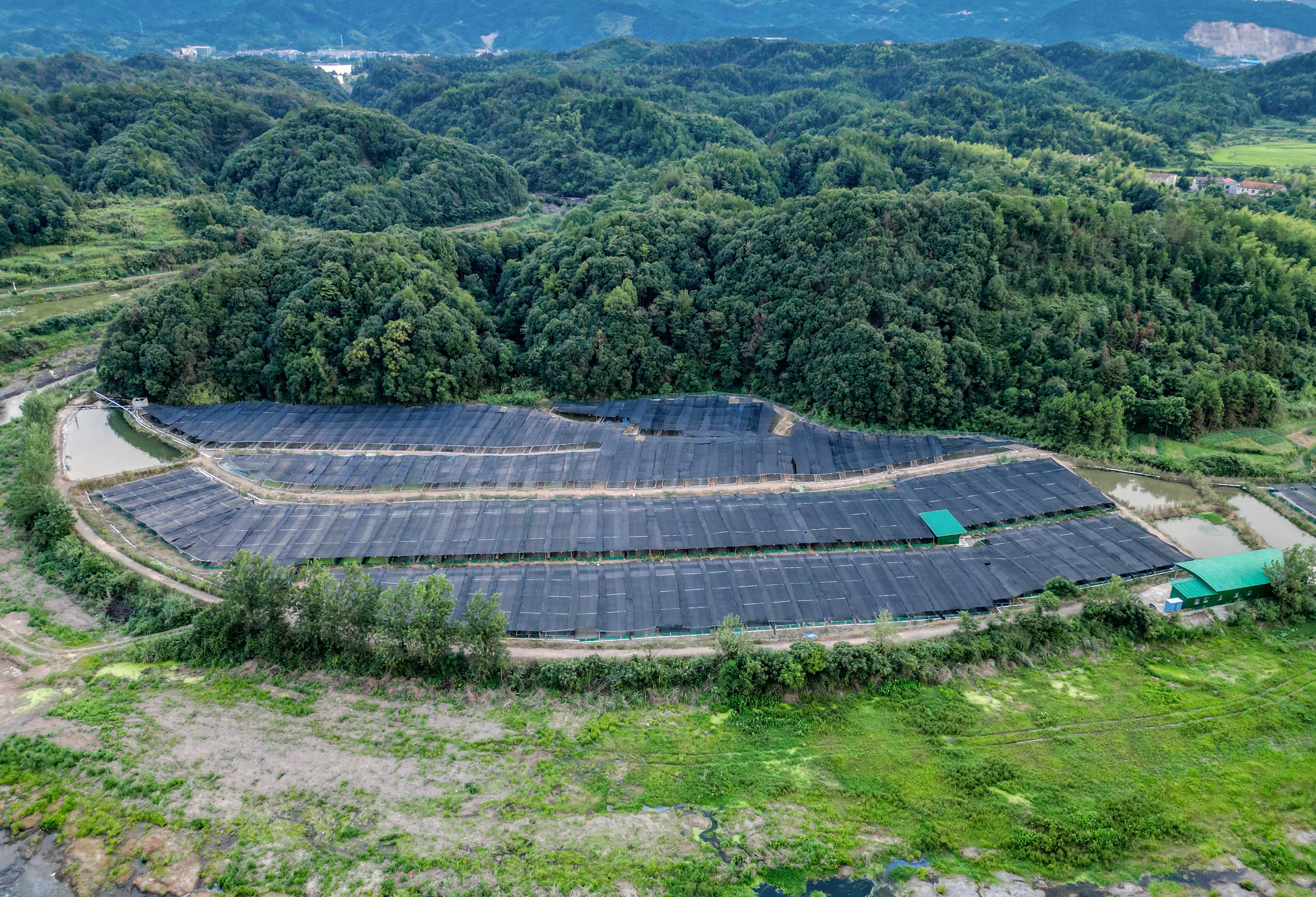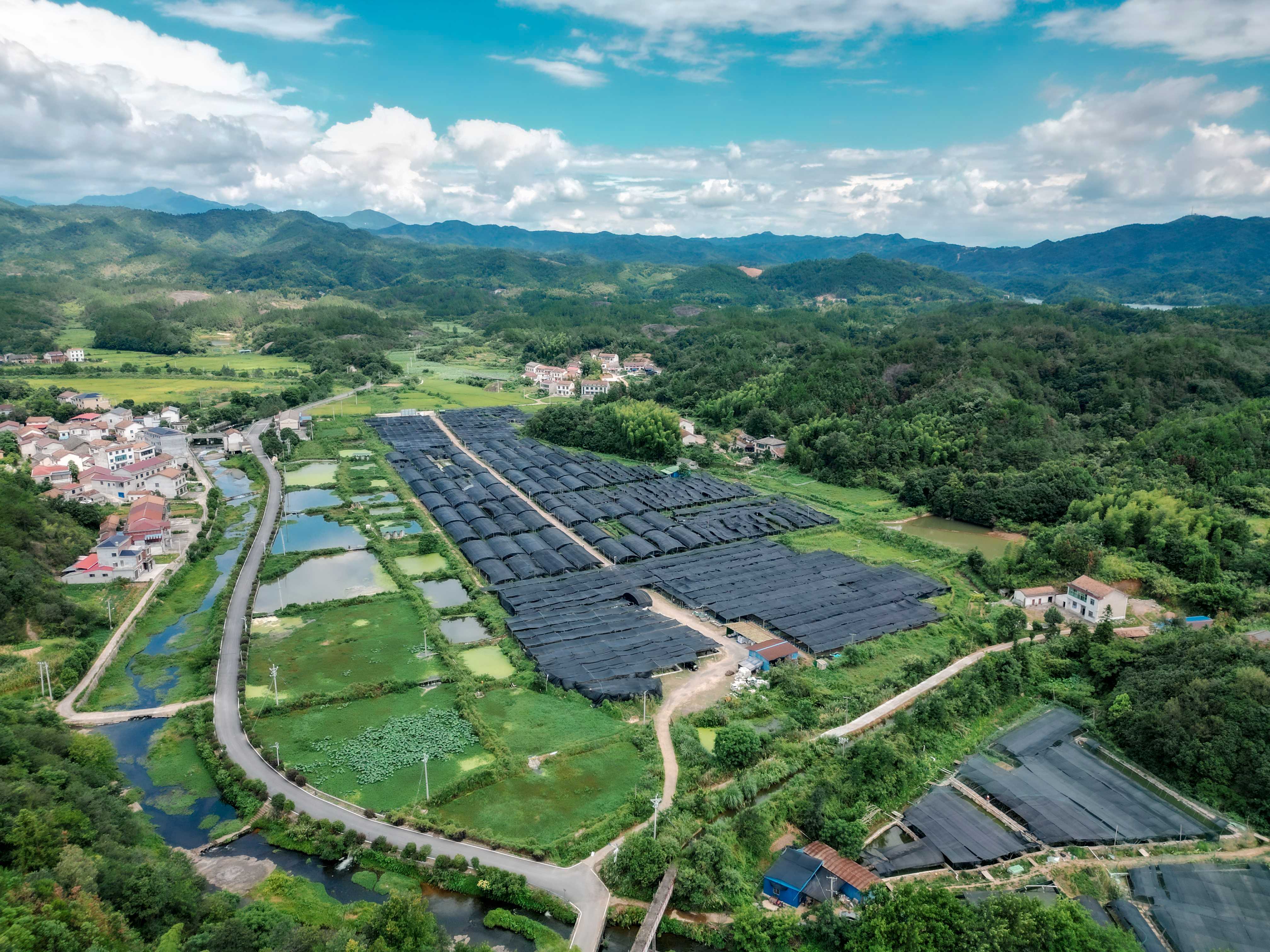 蛙与四大家鱼生态健康养殖于一体的特种水产养殖基地。基地现有养殖大棚15个共计4500平方,水域养殖网箱145个共计17400平方,土池1600个共计10万平方。
